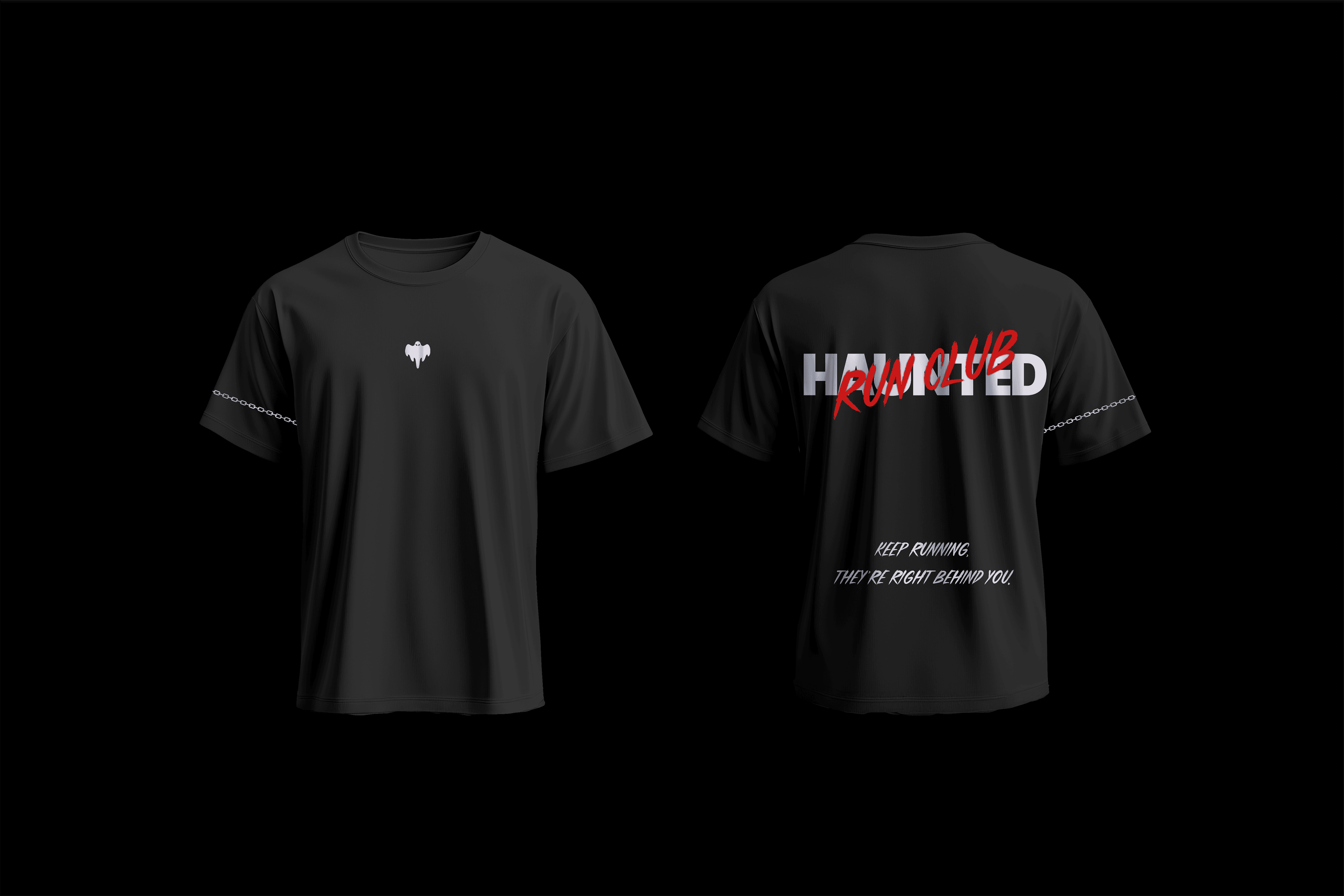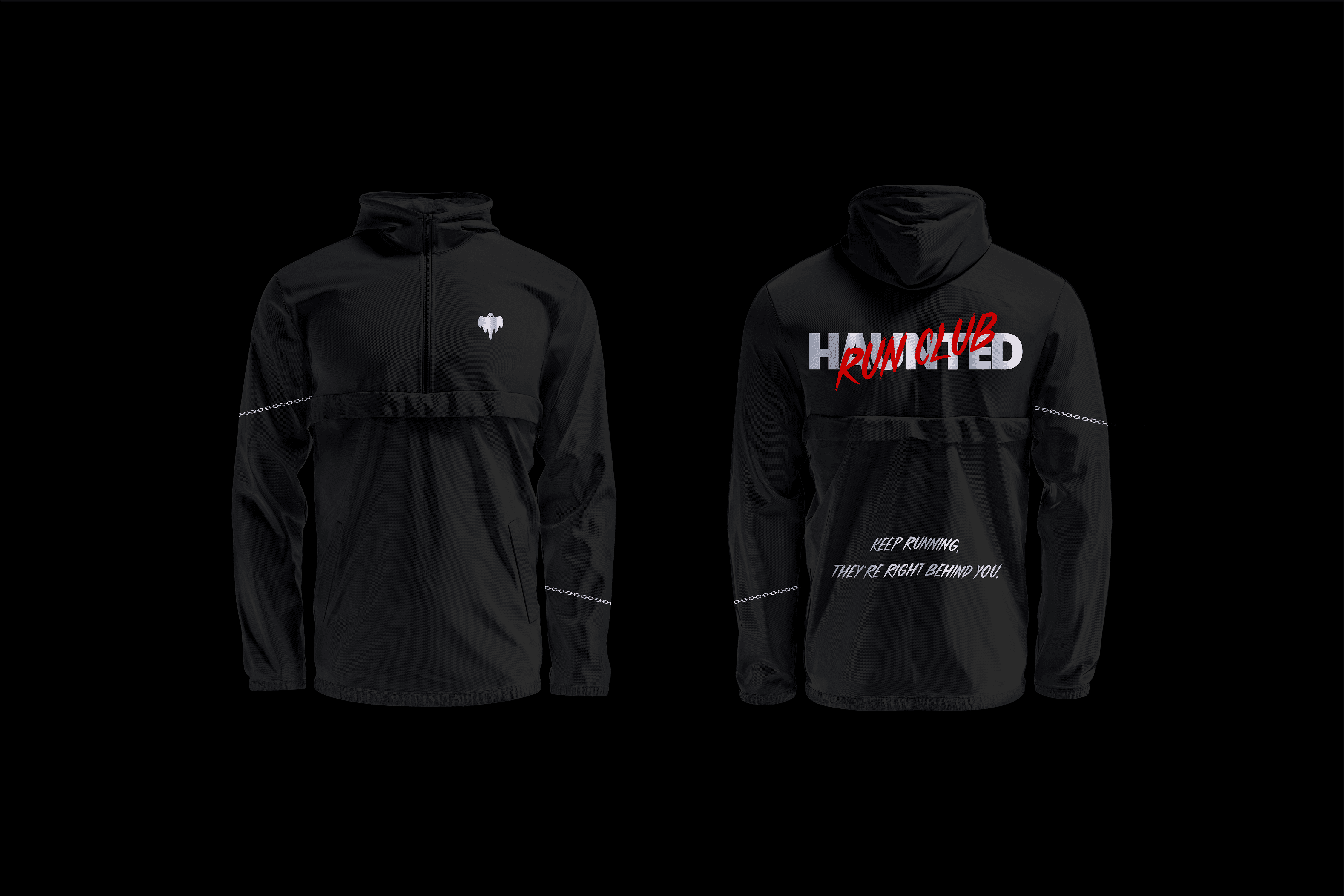Conceptual streetwear brand identity and product design merging athletic functionality with dark aesthetic for night runners